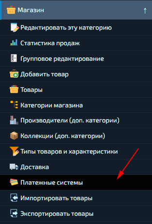 Для подключения платежных сервисов перейдите в раздел «Магазин» - «Платежные системы».