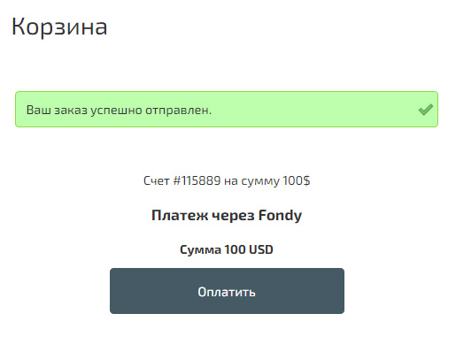 В результате после оформления заказа с выбором способа оплаты, покупателю сразу отображается кнопка «Оплатить».
