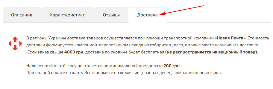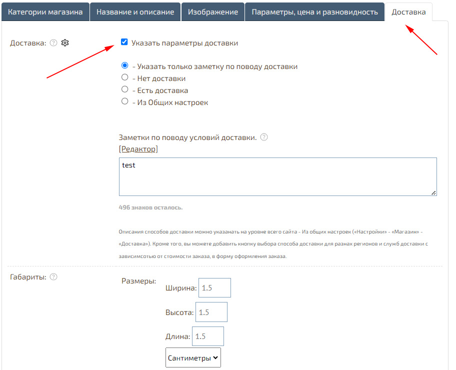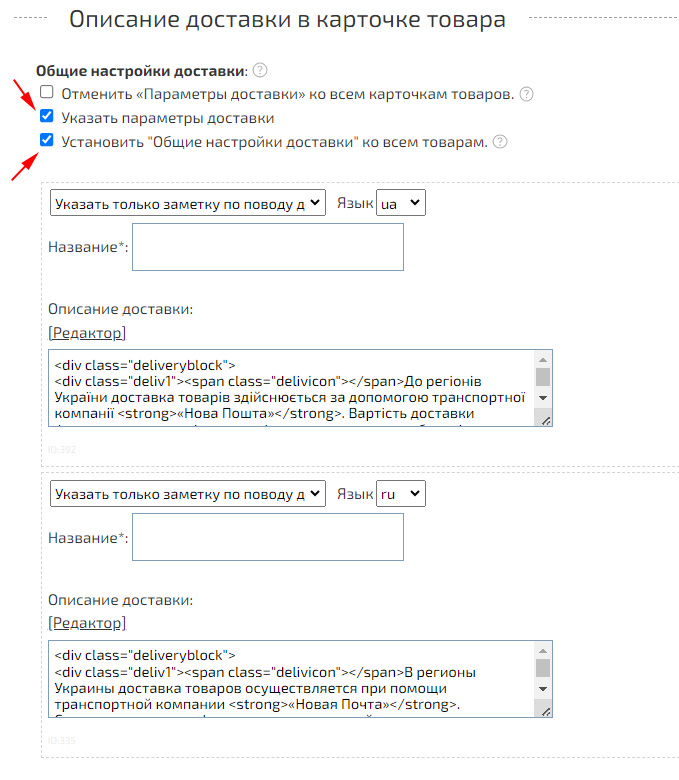 Как добавить индивидуальные описание о доставке в карточки товаров?