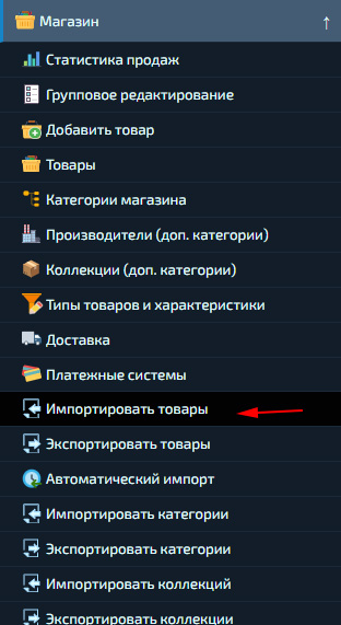 Перейдите в раздел «Магазин» - «Импортировать товары».