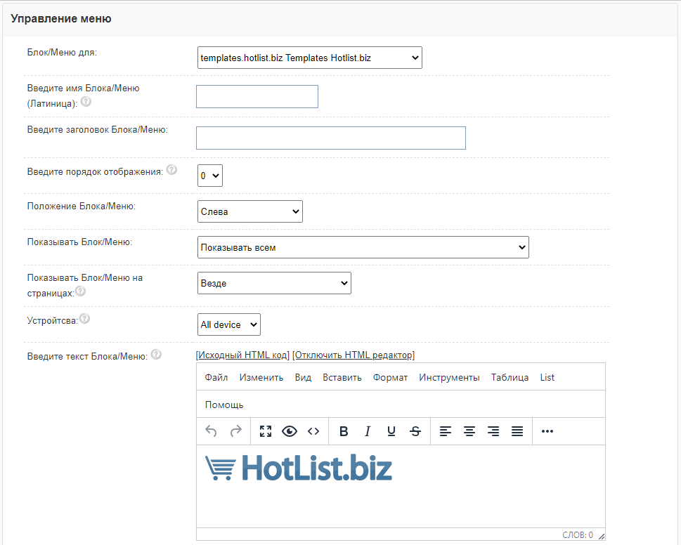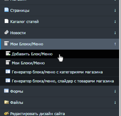В Адмицентре, или в Админ-панели, выберите "Мои Блоки/Меню" - "Добавить Блок/меню".