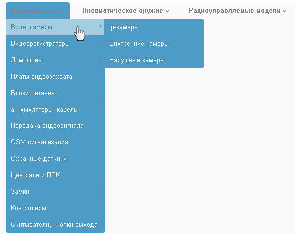 Вставьте код многоуровневого меню, и сохраните изменения. Например, после вставки когда из генератора меню, для категорий магазина, мы получим следующее меню.