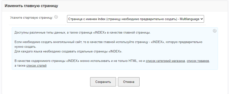 Вы сможете установить в качестве стартовой страницы, перечень ваших товаров, определенную рубрику каталога, страницу index, или прочее.