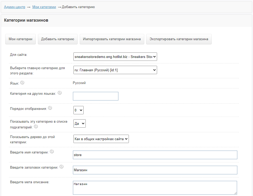 Создание категории магазина