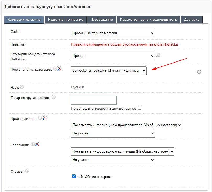 Вы так же сможете индивидуально оформить информацию о способах доставки для всех товаров или индивидуально для каждого.