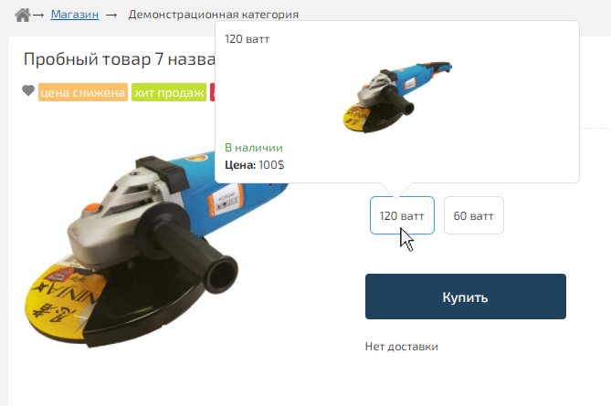 При изменении типа продукта, будут отображены значения характеристик. По ним покупатели смогут более быстро находить нужные им товары.