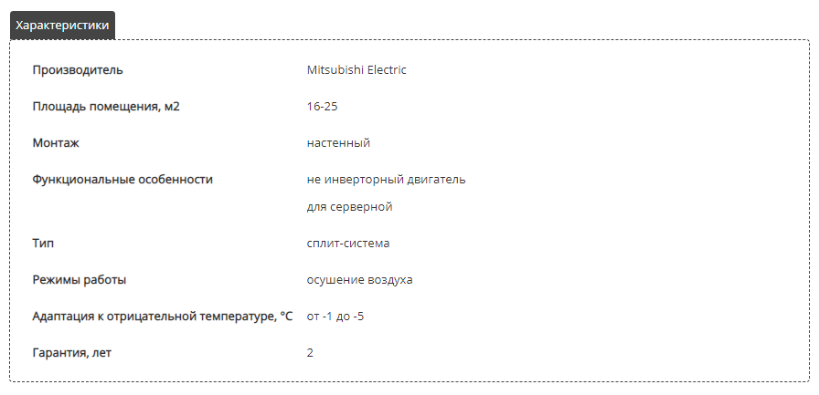 Укажем характеристики к товару