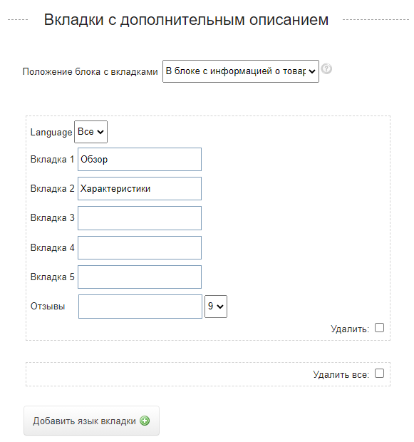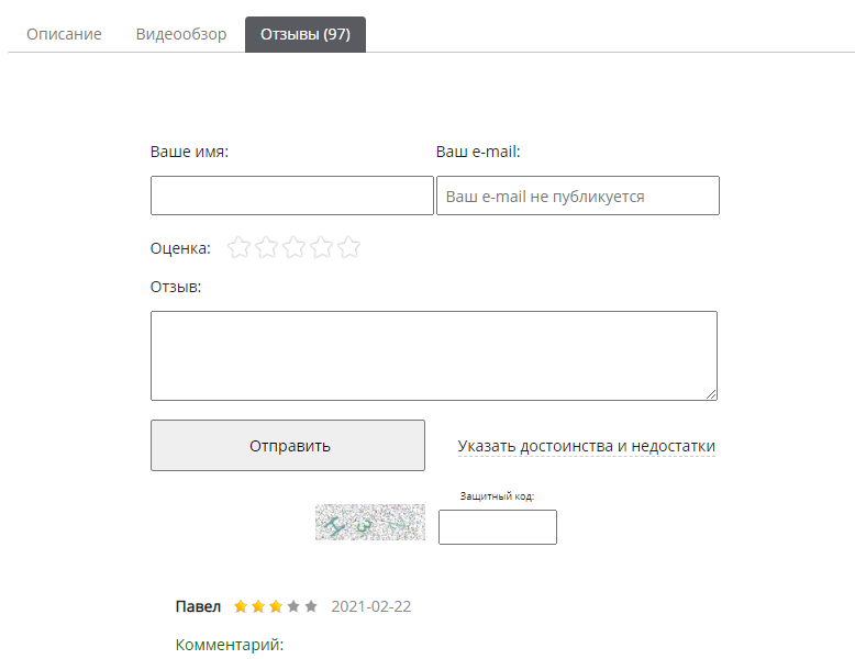 Так же вы можете разместить "Отзывы" в одной из вкладок. Для этого установите галочку в строке "Показывать комментарии во вкладке".