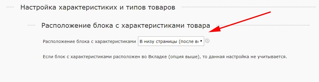 Додано налаштування місця відображення блоку з характеристиками товарів.