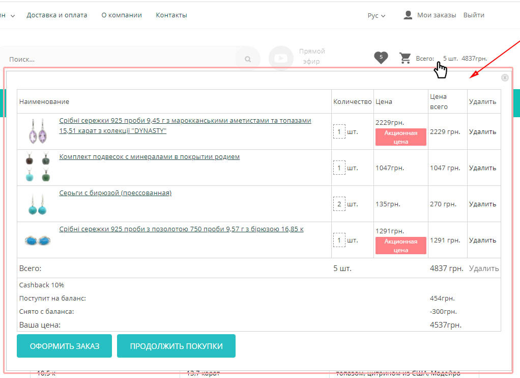 Додано інструкцію зі створення спливаючого блоку з вмістом кошика. У прикладі скрипт спрацьовує при наведенні на іконку кошика